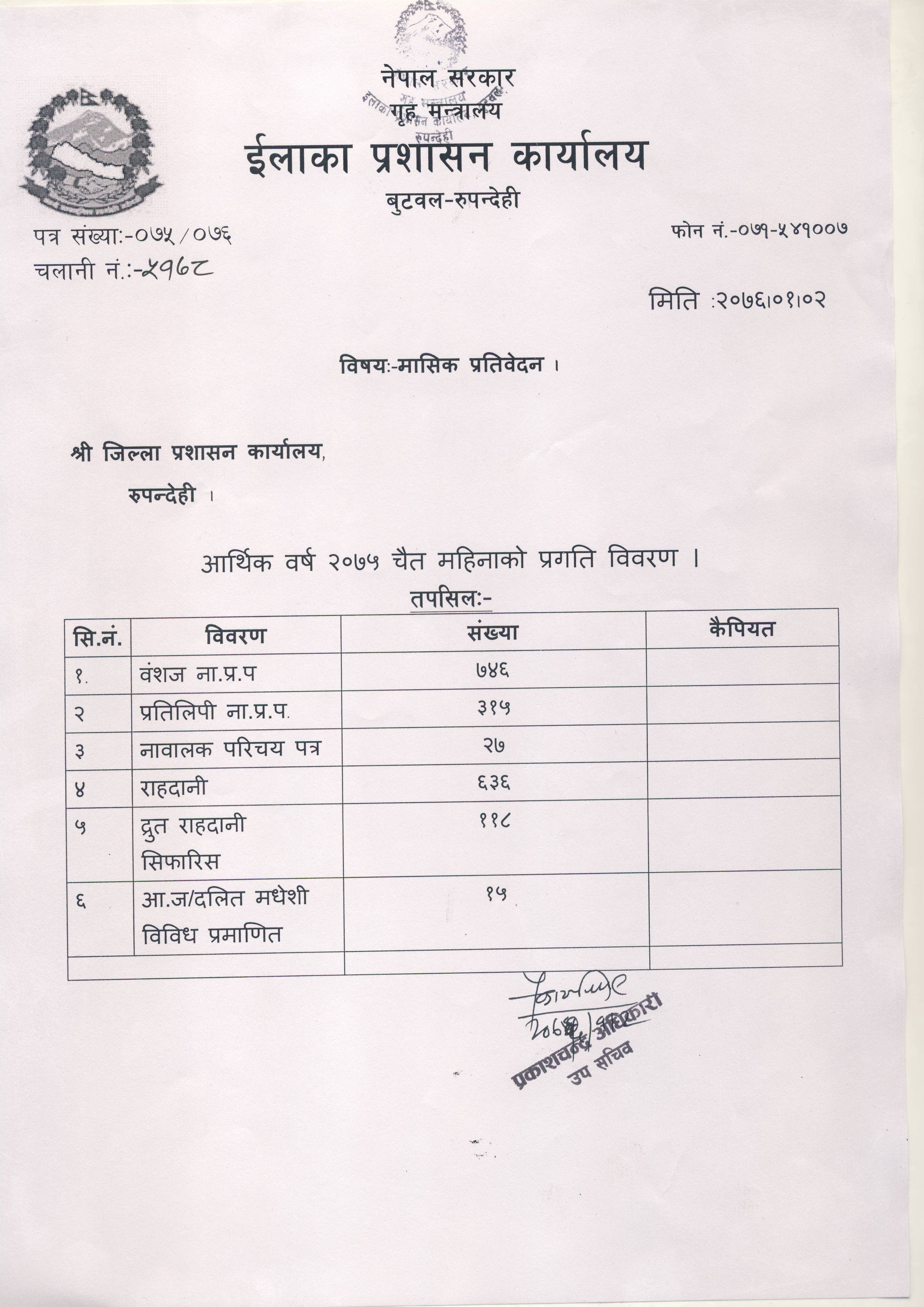 २०७७असोज महिनाको मासिक प्रगती विवरण ।
