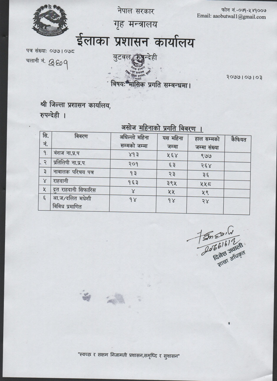 २०७७असोज महिनाको मासिक प्रगती विवरण ।