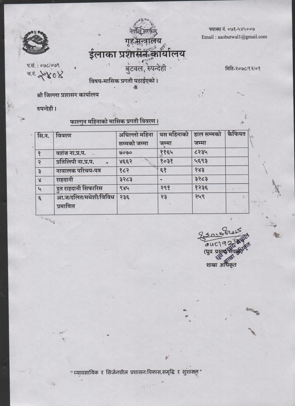 फाल्गुन महिनाको मासिक प्रगति सम्बन्धमा ।