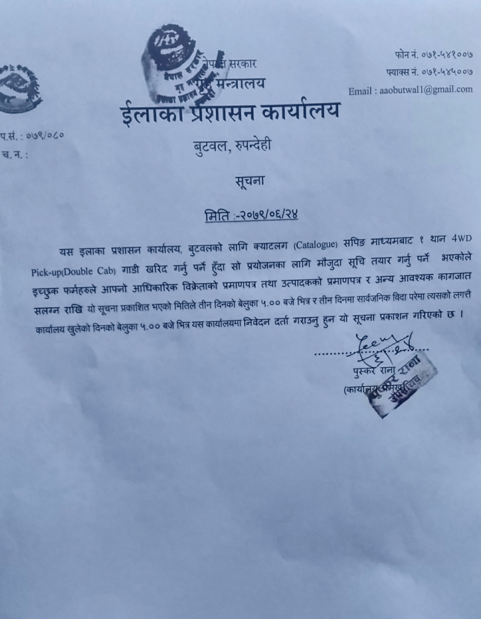 © सर्वाधिकार सुरक्षित ईलाका प्रशासन कार्यालय, बुटवल, रुपन्देही