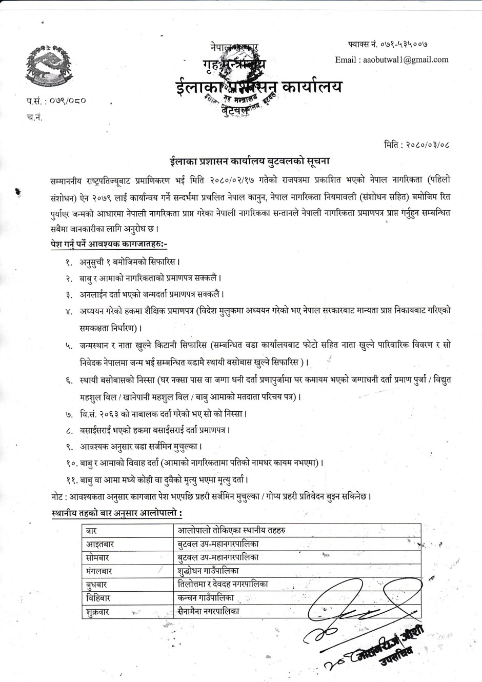 ईलाका प्रशसन कार्यालय बुटवलको सूचना ।