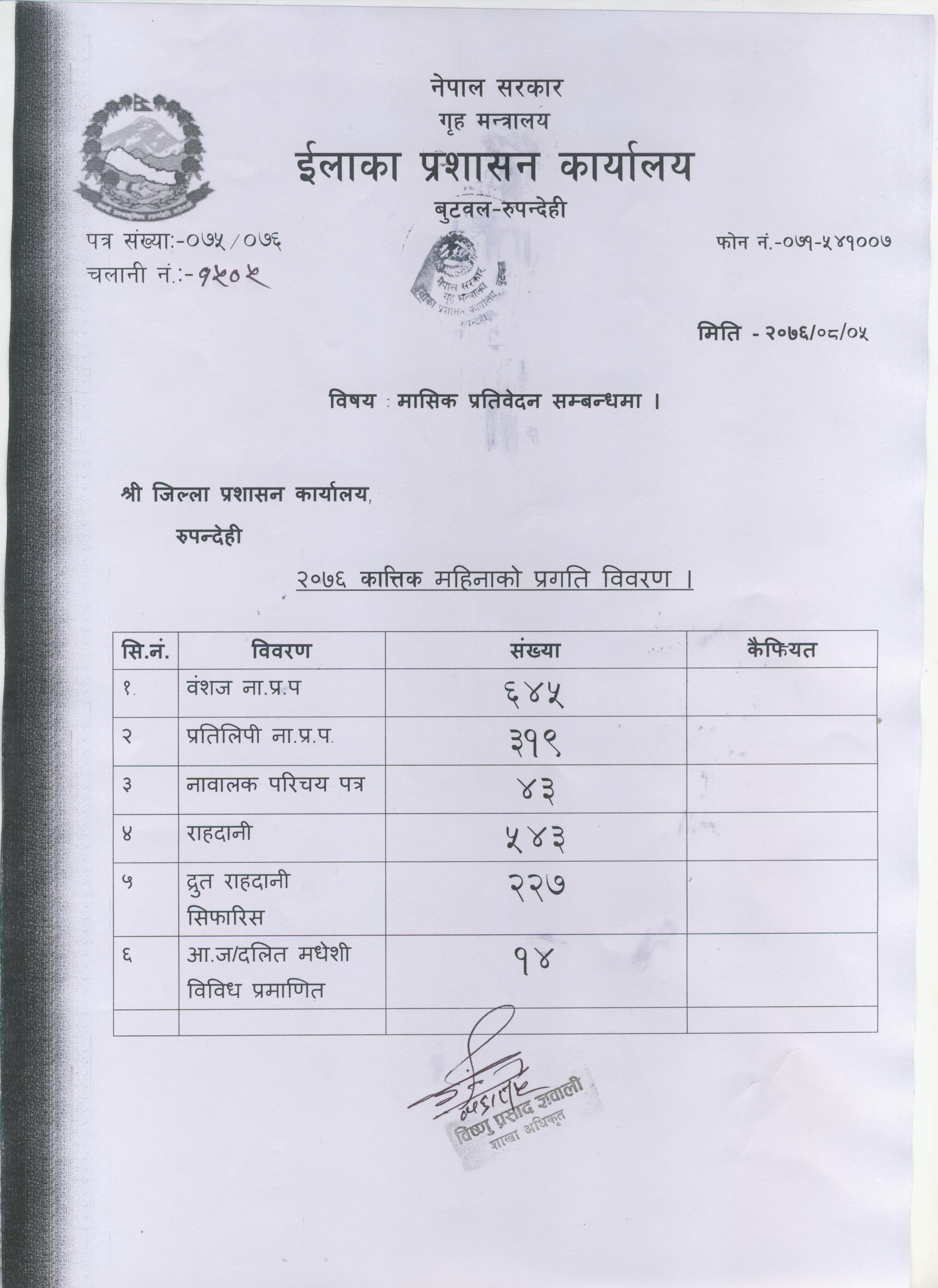 २०७६ कात्तिक महिनाको प्रगति विवरण