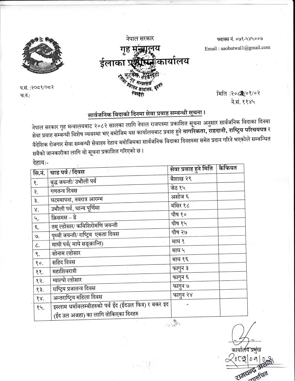 सार्वजनिक विदाका दिनमा सेवा प्रवाह गर्ने सम्बन्धमा ।