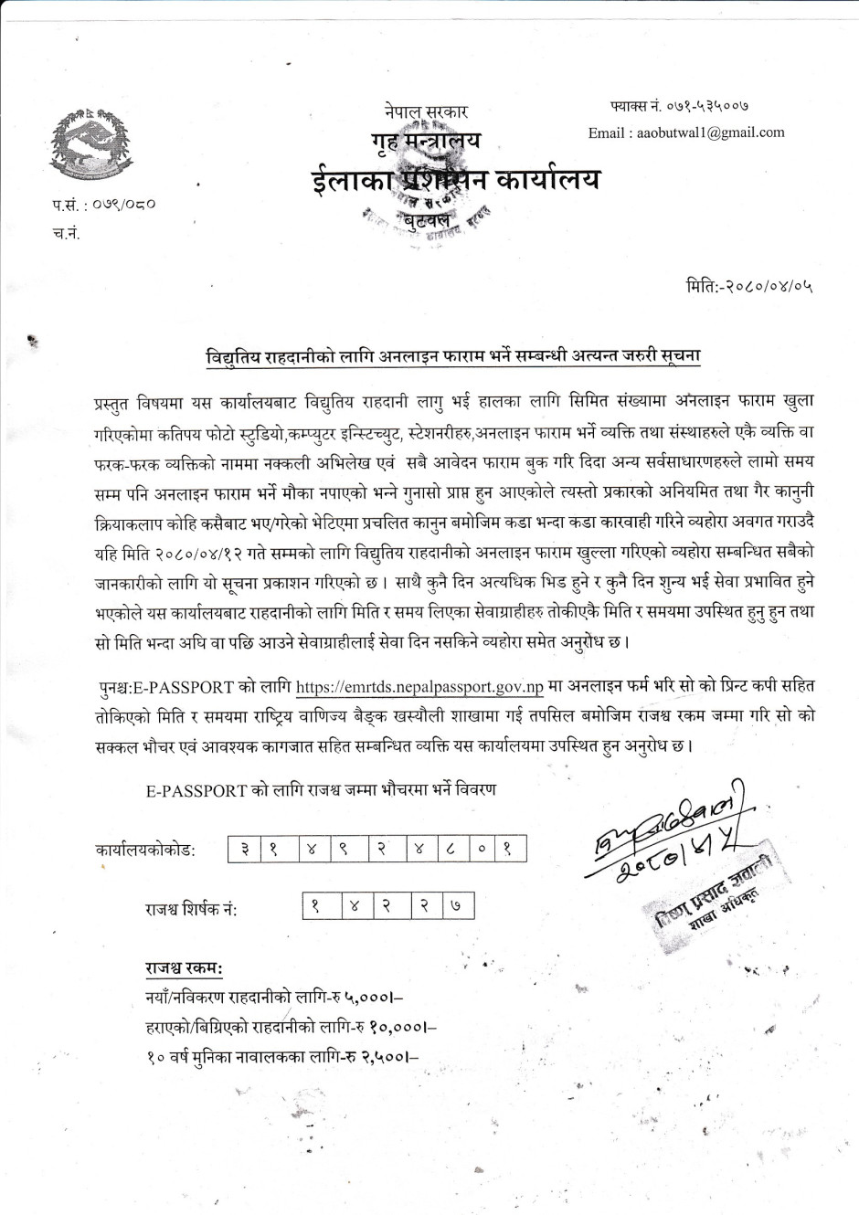 राहदानीको सेवा सुचारु सम्बन्धी सुचना ।