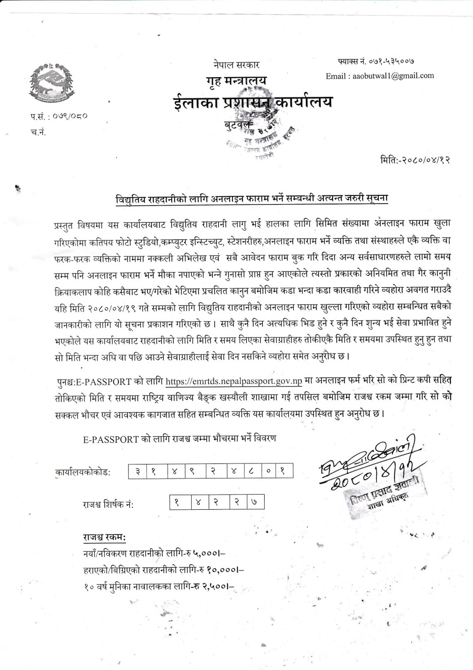 राहदानीको सम्बन्धी सुचना।