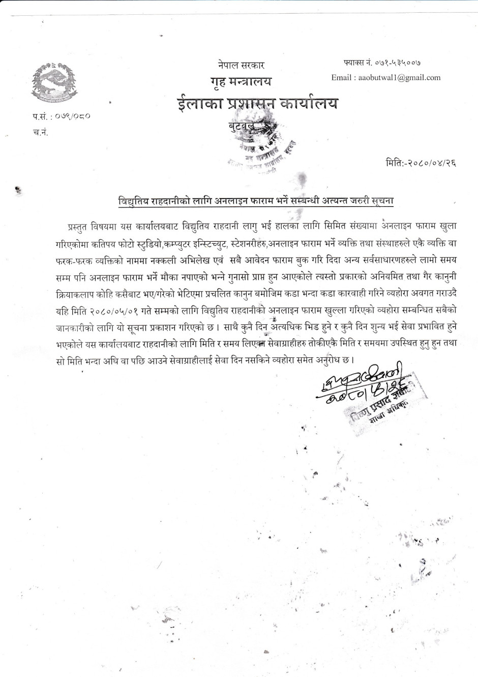 © सर्वाधिकार सुरक्षित ईलाका प्रशासन कार्यालय, बुटवल, रुपन्देही