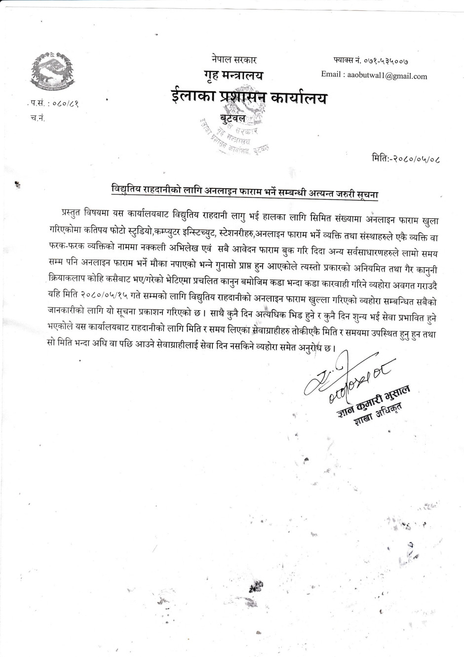 © सर्वाधिकार सुरक्षित ईलाका प्रशासन कार्यालय, बुटवल, रुपन्देही