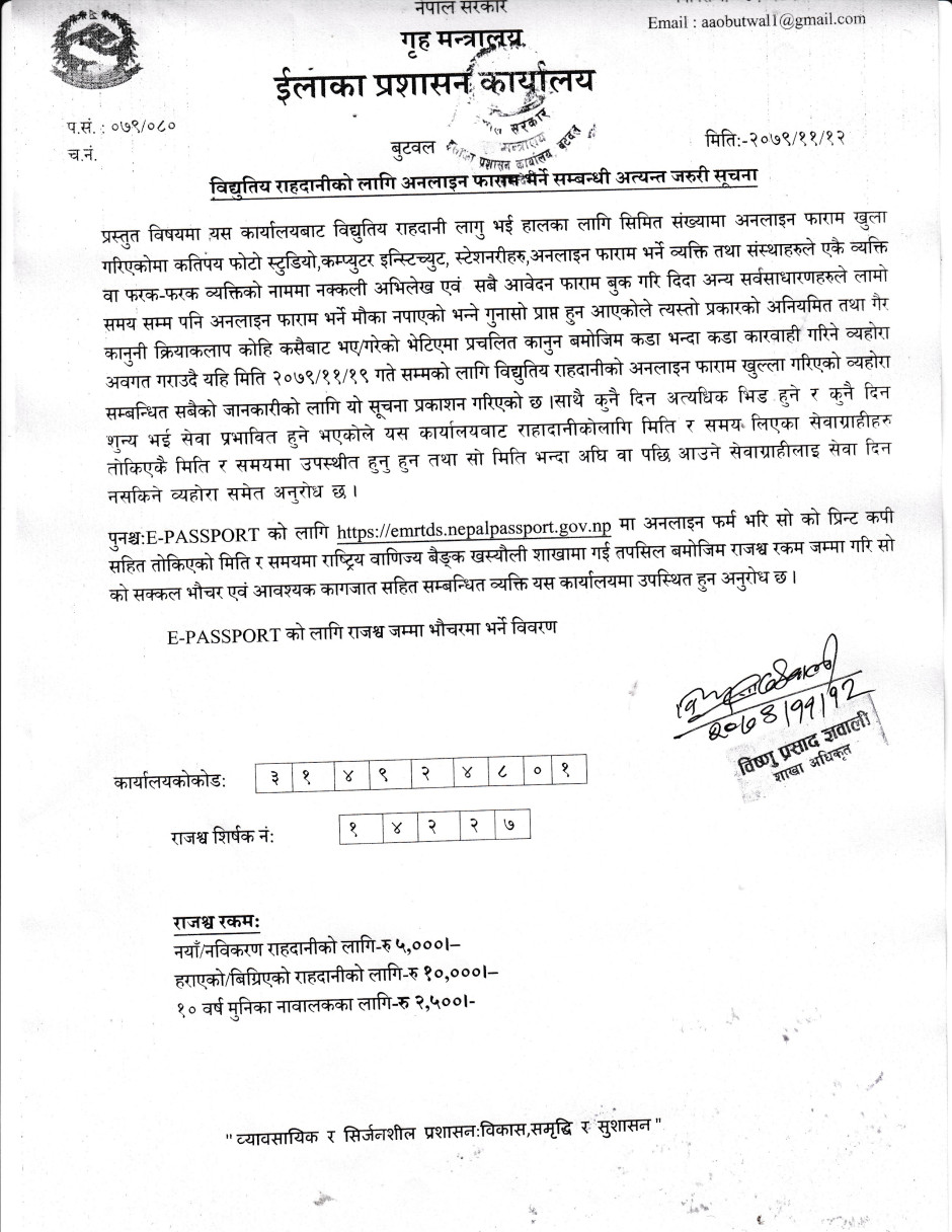 राहदानीको सेवा सुचारु सम्बन्धी सुचना ।