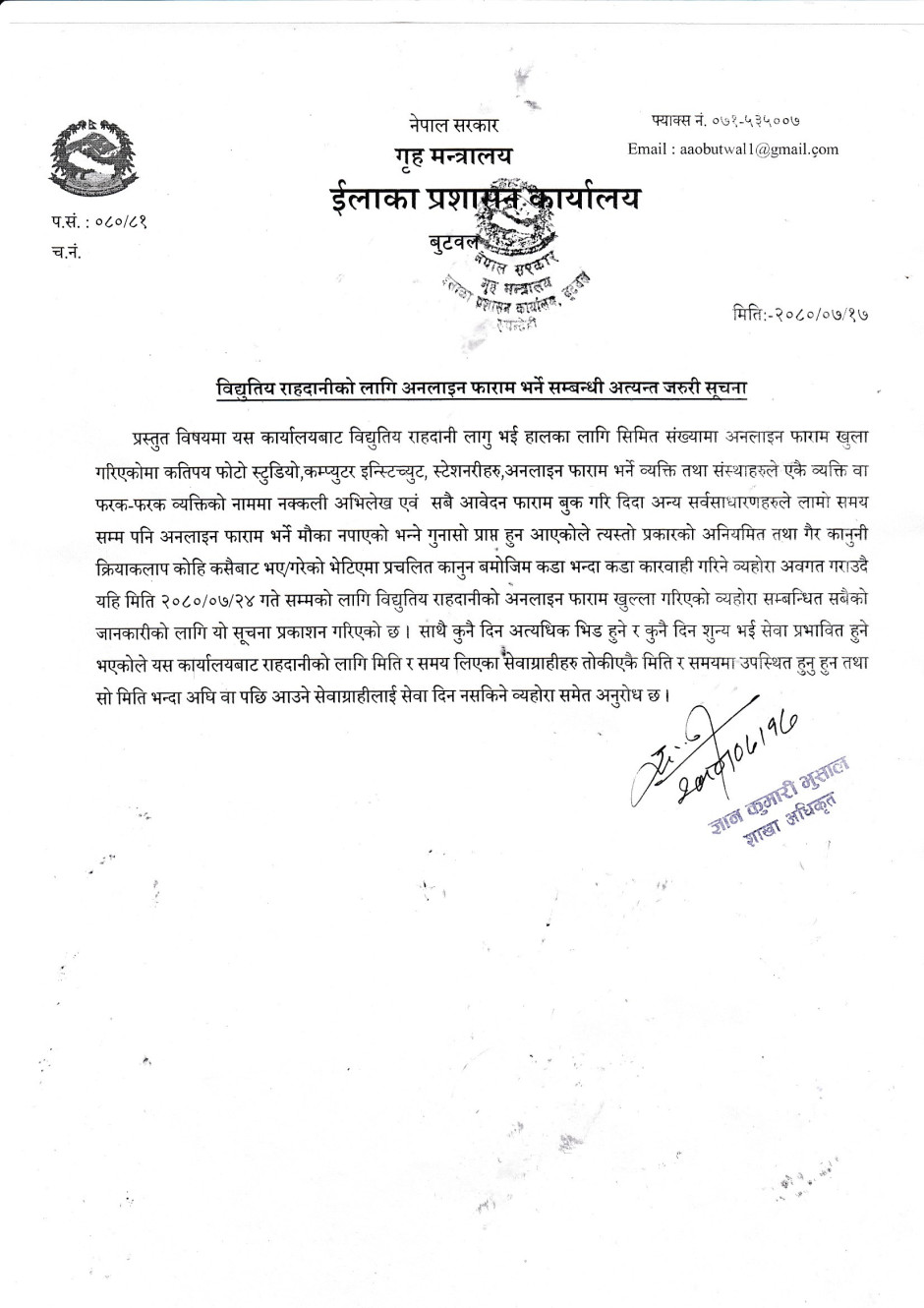 © सर्वाधिकार सुरक्षित ईलाका प्रशासन कार्यालय, बुटवल, रुपन्देही