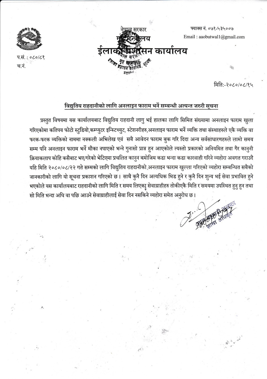 राहदानीको सेवा सुचारु सम्बन्धी सुचना ।