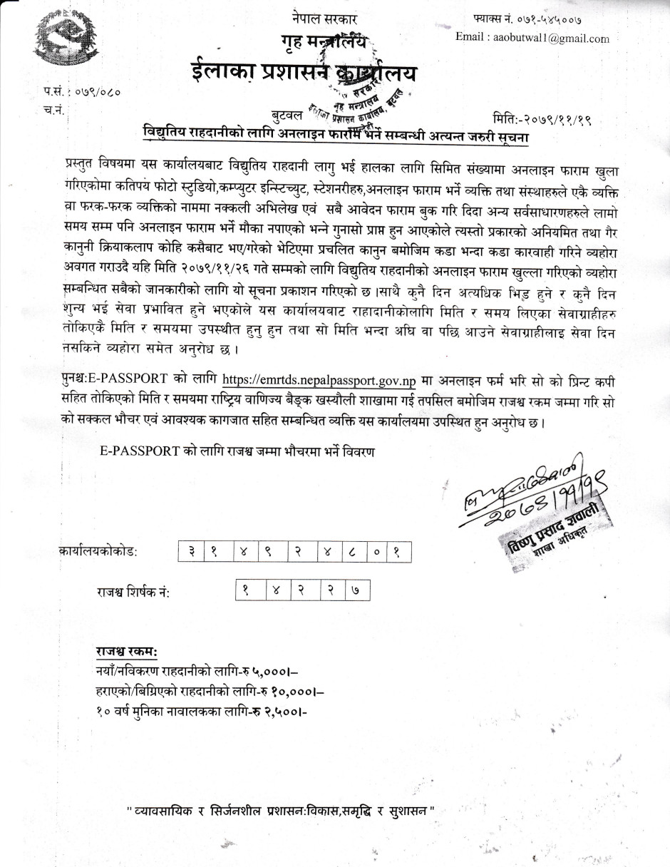 राहदानीको सम्बन्धी सुचना।