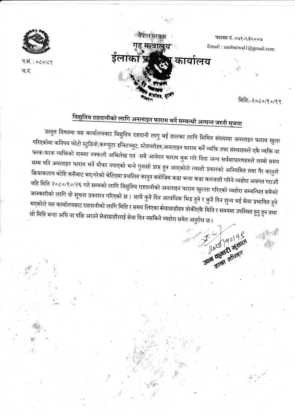 राहदानीको सेवा सुचारु सम्बन्धी सुचना ।