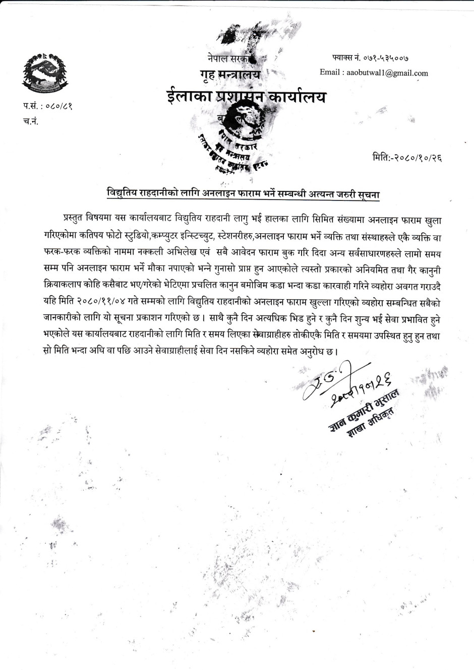 राहदानीको सेवा सुचारु सम्बन्धी सुचना ।
