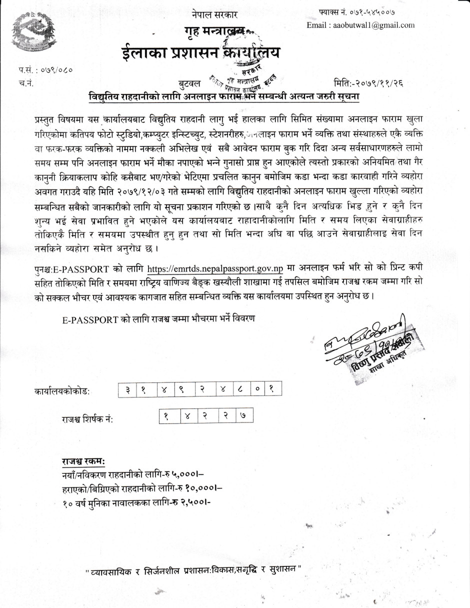 राहदानीको सम्बन्धी सुचना।