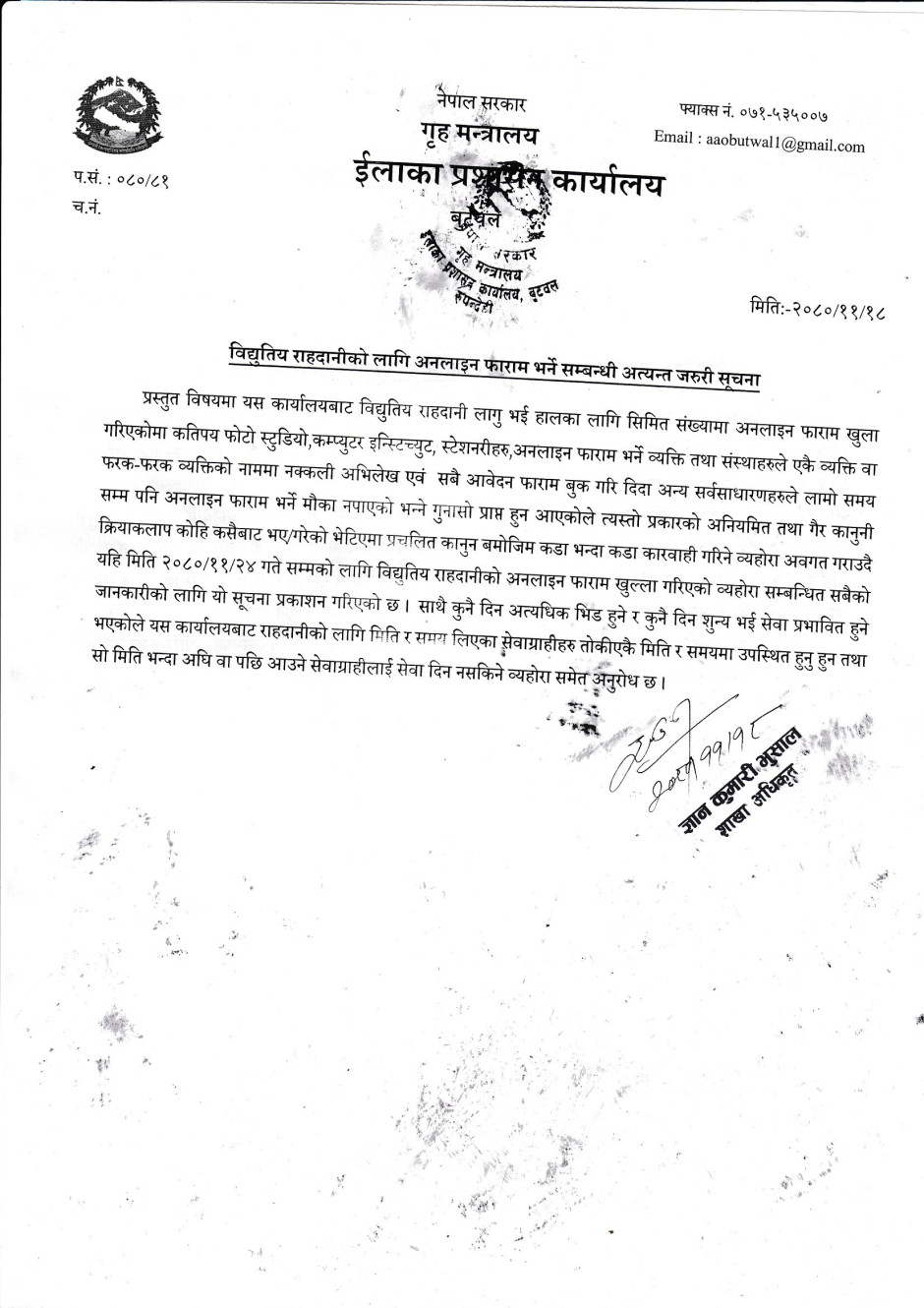 राहदानीको सेवा सुचारु सम्बन्धी सुचना ।