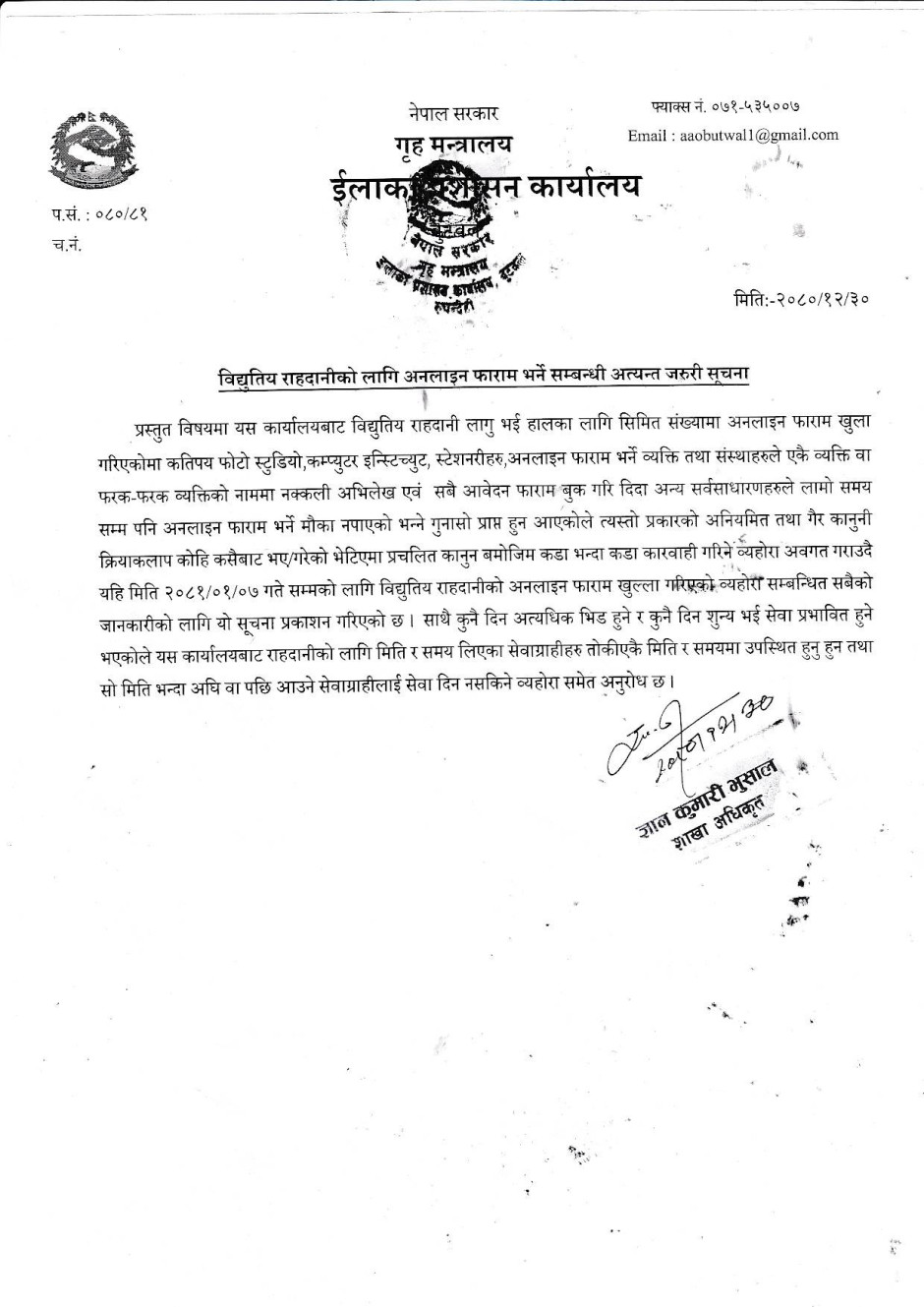 © सर्वाधिकार सुरक्षित ईलाका प्रशासन कार्यालय, बुटवल, रुपन्देही