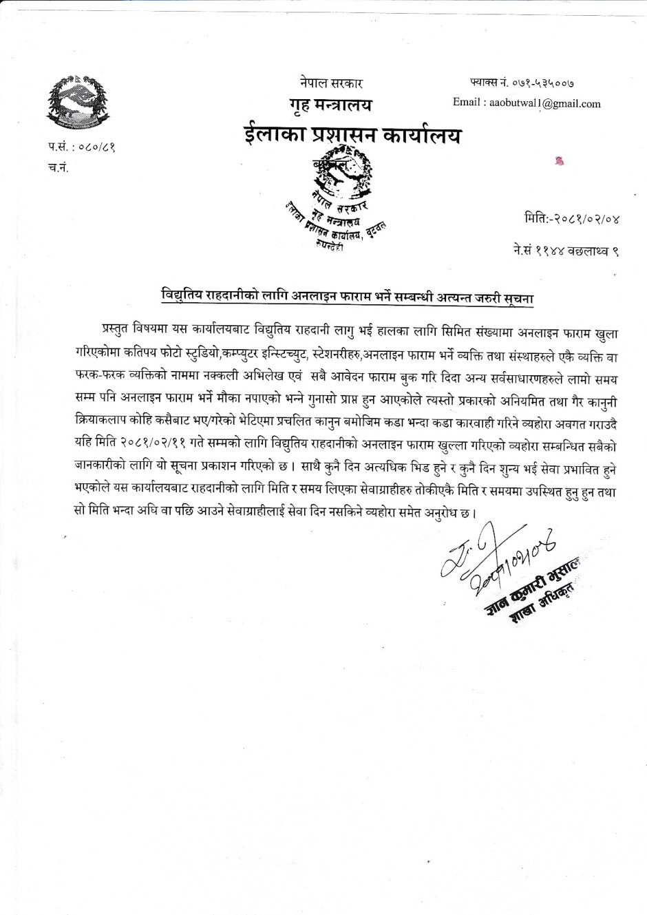 © सर्वाधिकार सुरक्षित ईलाका प्रशासन कार्यालय, बुटवल, रुपन्देही