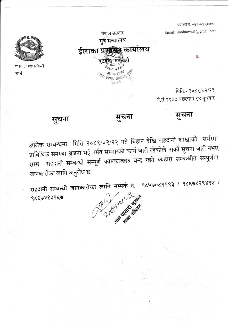 ईलाका प्रशासन कार्यालय, बुटवल, रुपन्देही