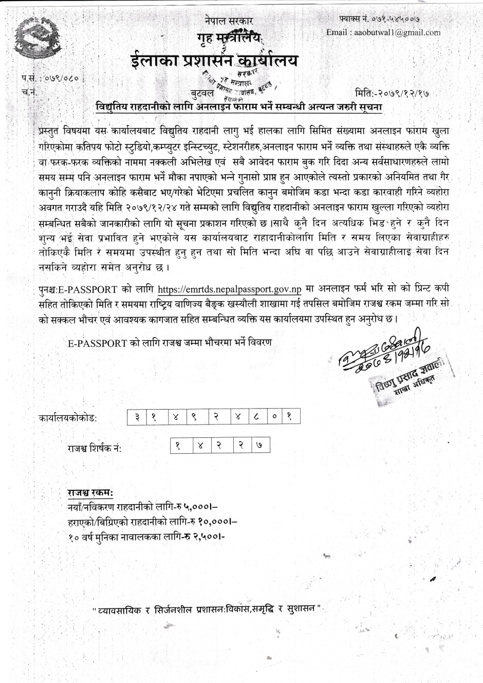 राहदानीको सेवा सुचारु सम्बन्धी सुचना ।