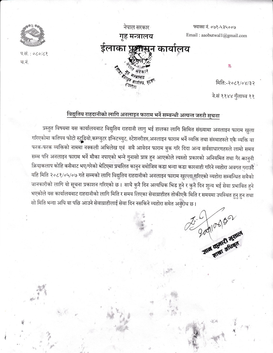 © सर्वाधिकार सुरक्षित ईलाका प्रशासन कार्यालय, बुटवल, रुपन्देही