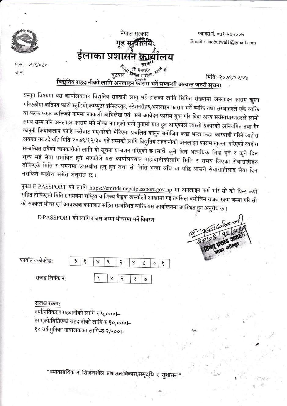 राहदानीको सेवा सुचारु सम्बन्धी सुचना ।