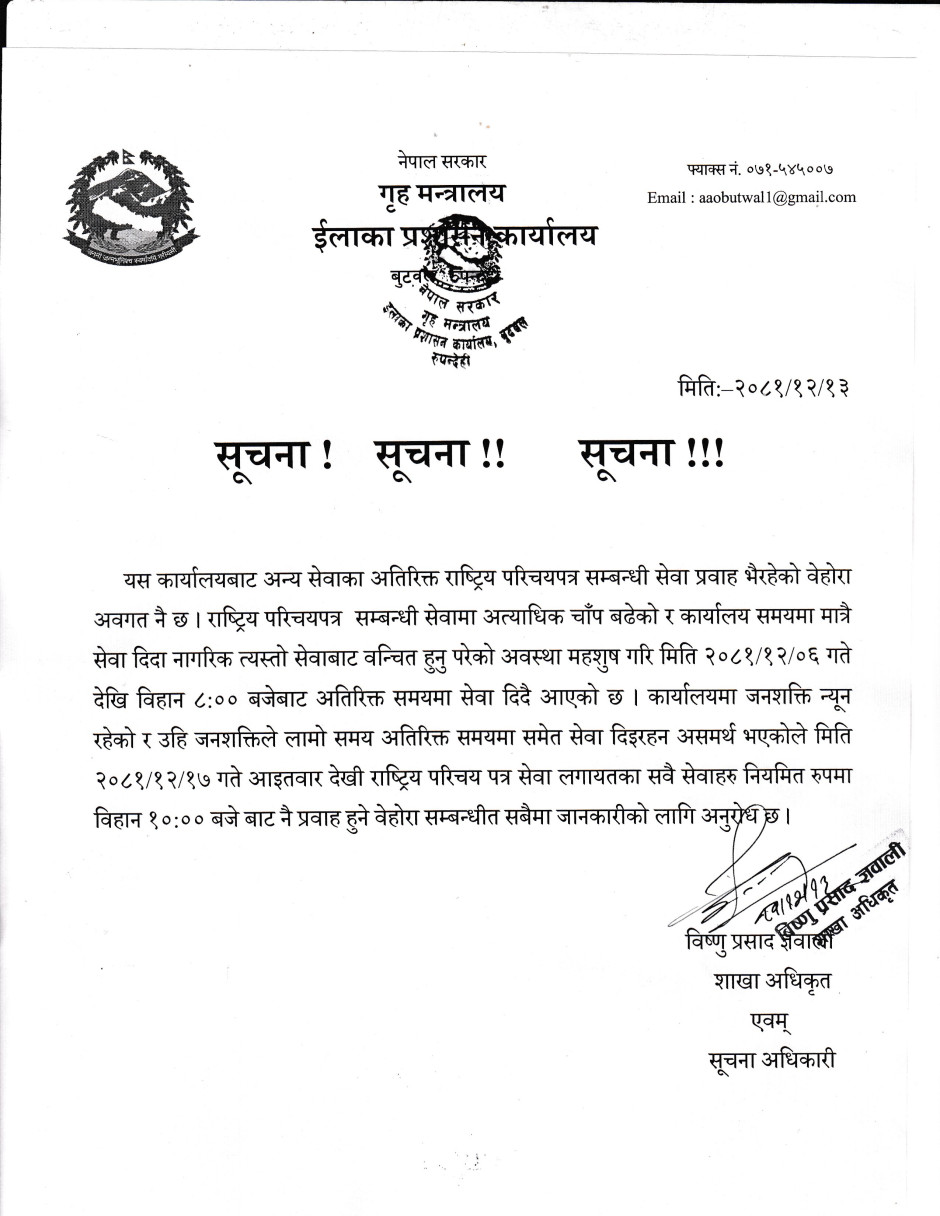 राष्ट्रिय परिचपत्रको सेवा सूचारु सम्बन्धी सुचना ।