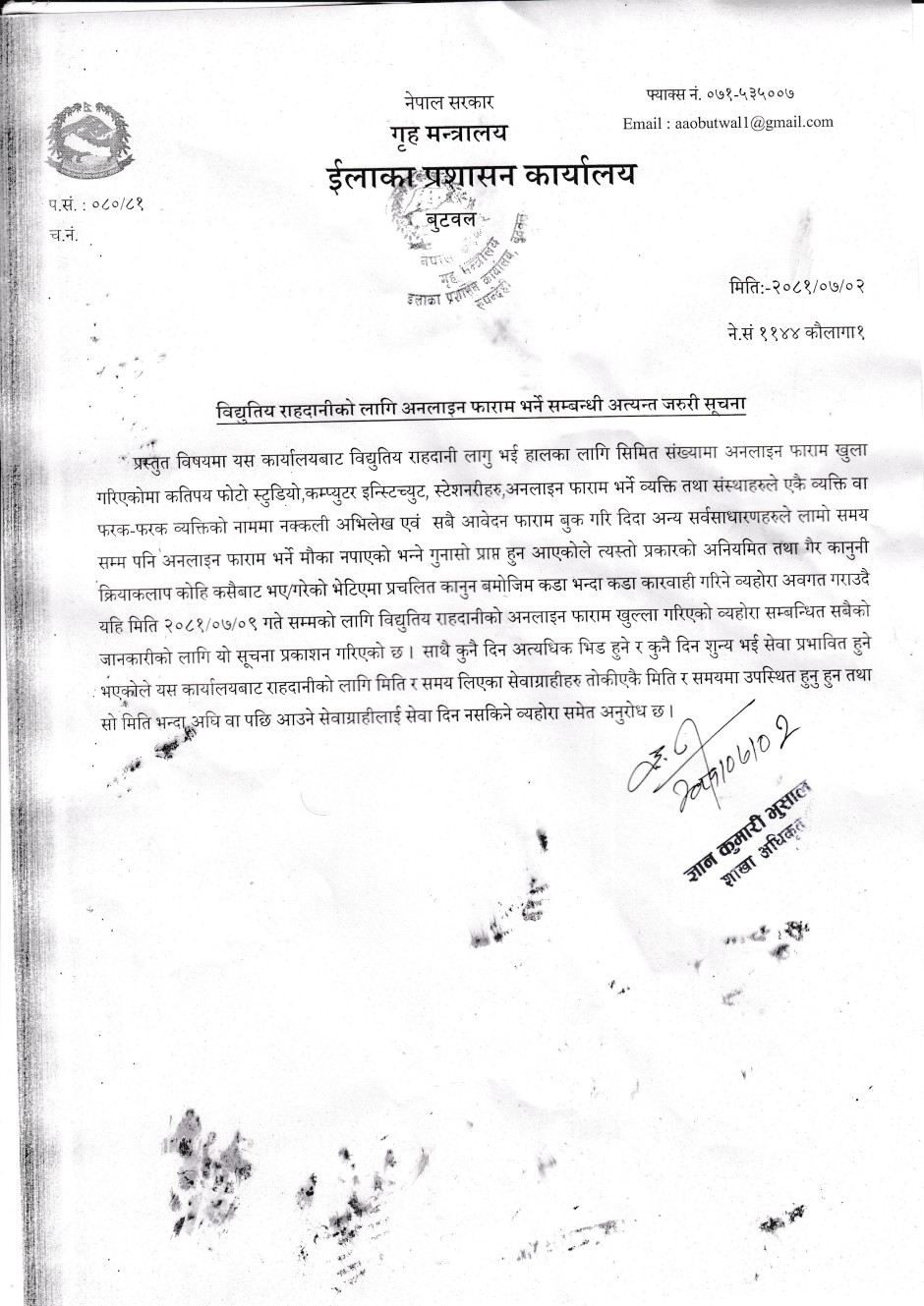 © सर्वाधिकार सुरक्षित ईलाका प्रशासन कार्यालय, बुटवल, रुपन्देही