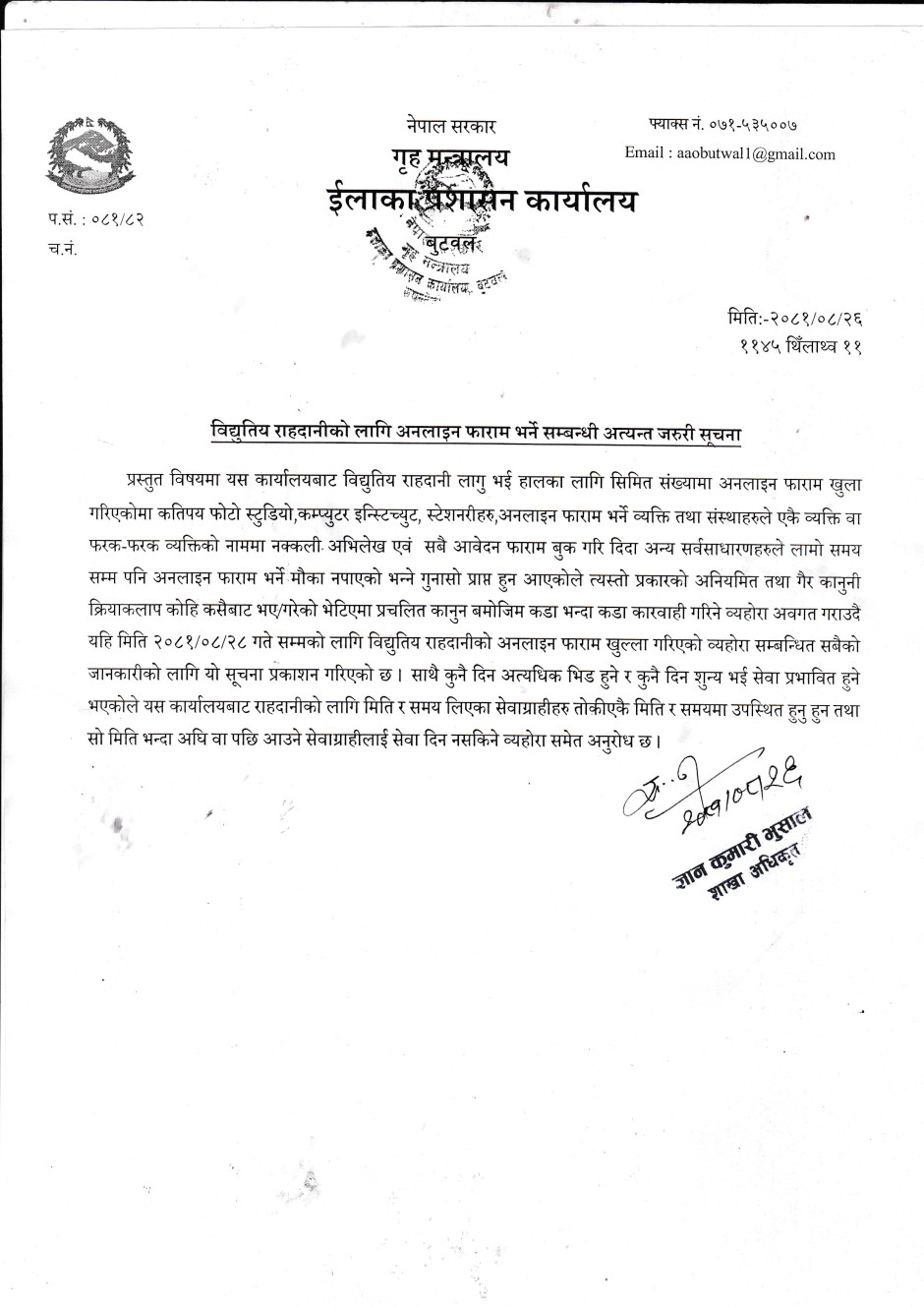 ईलाका प्रशासन कार्यालय, बुटवल, रुपन्देही
