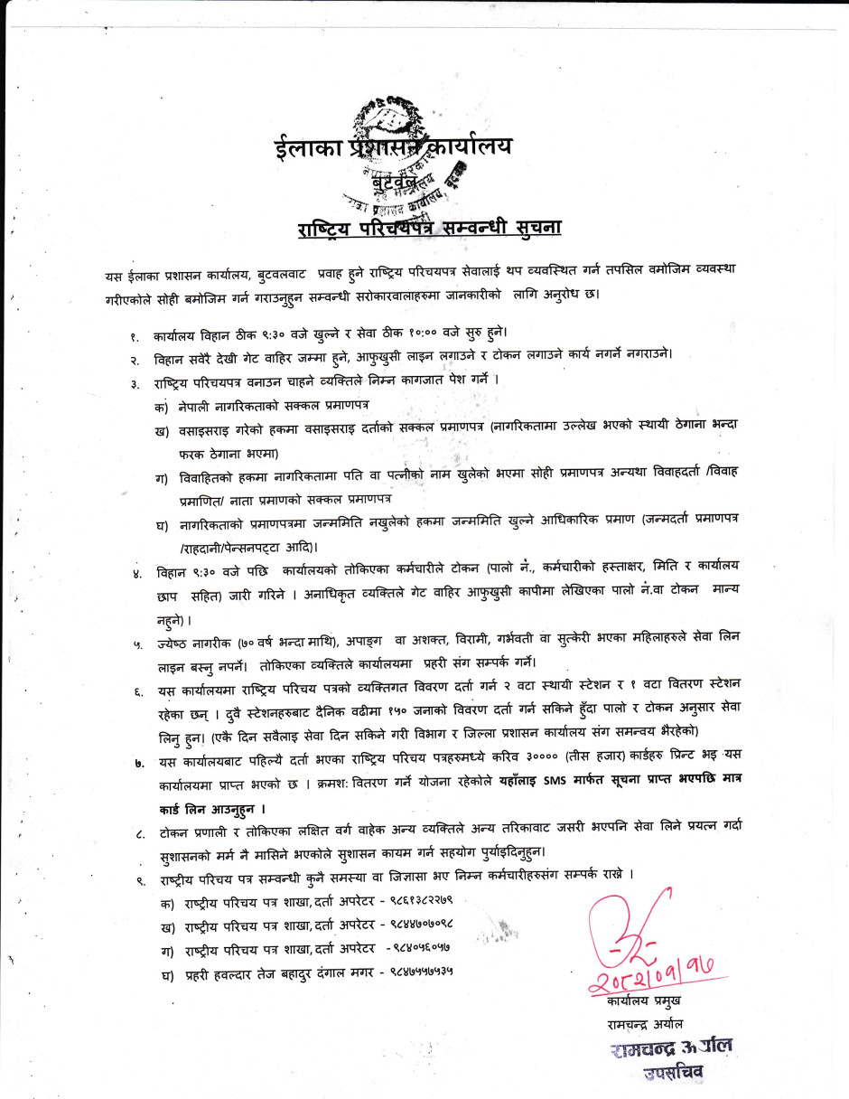राष्ट्रिय परिचपत्रको सेवा सूचारु सम्बन्धी सुचना ।