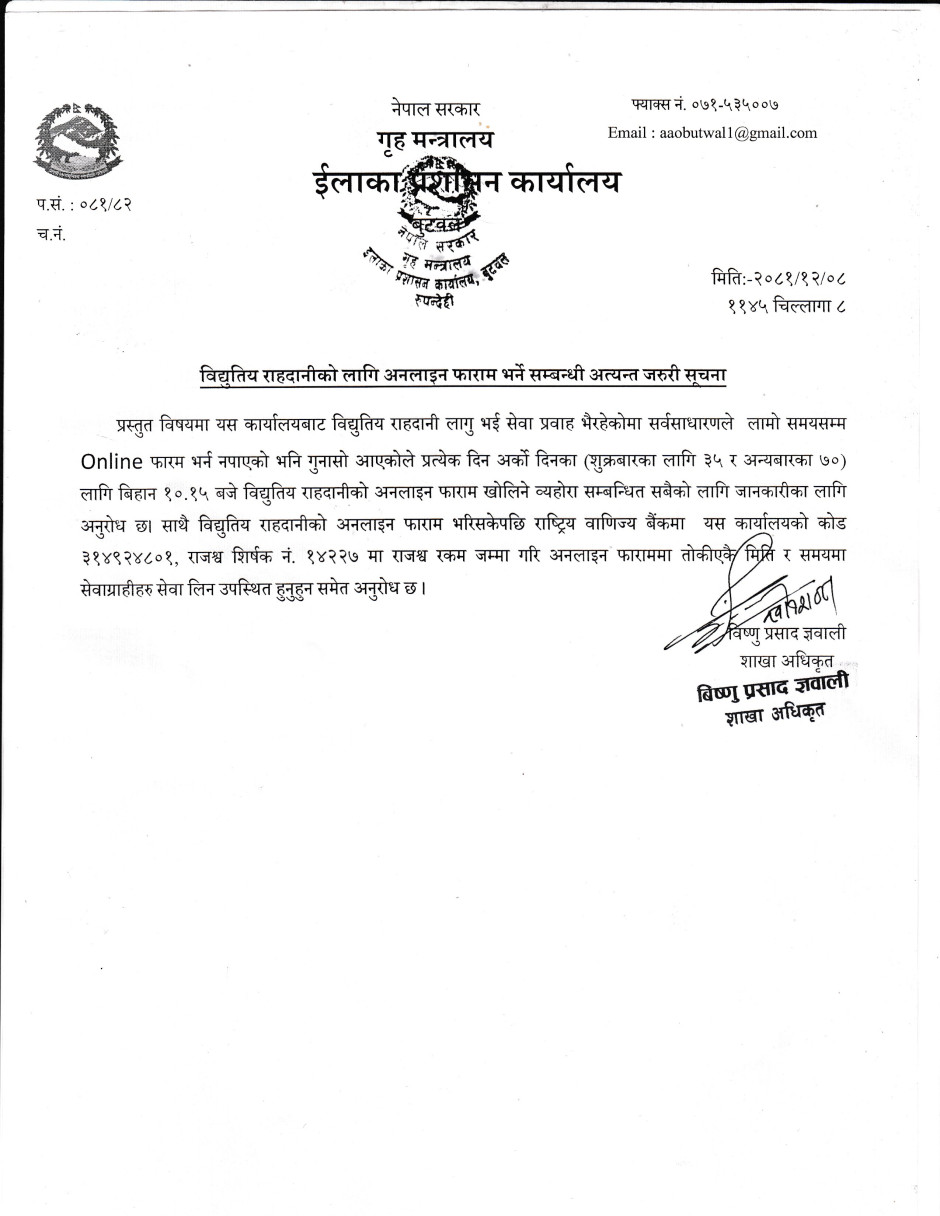 © सर्वाधिकार सुरक्षित ईलाका प्रशासन कार्यालय, बुटवल, रुपन्देही