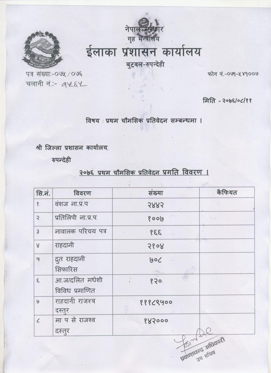 प्रथम चौमासिक प्रतिवेदन २०७६