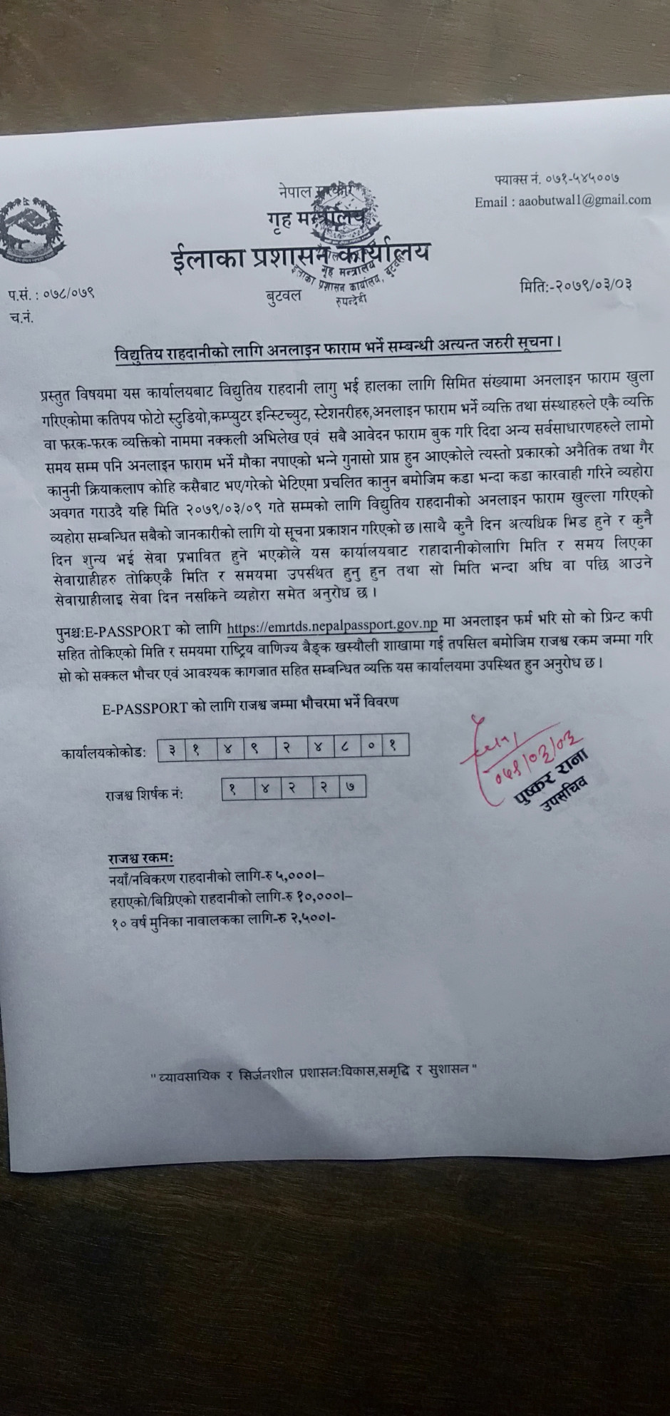 राहदानीको सेवा सुचारु सम्बन्धी सुचना ।