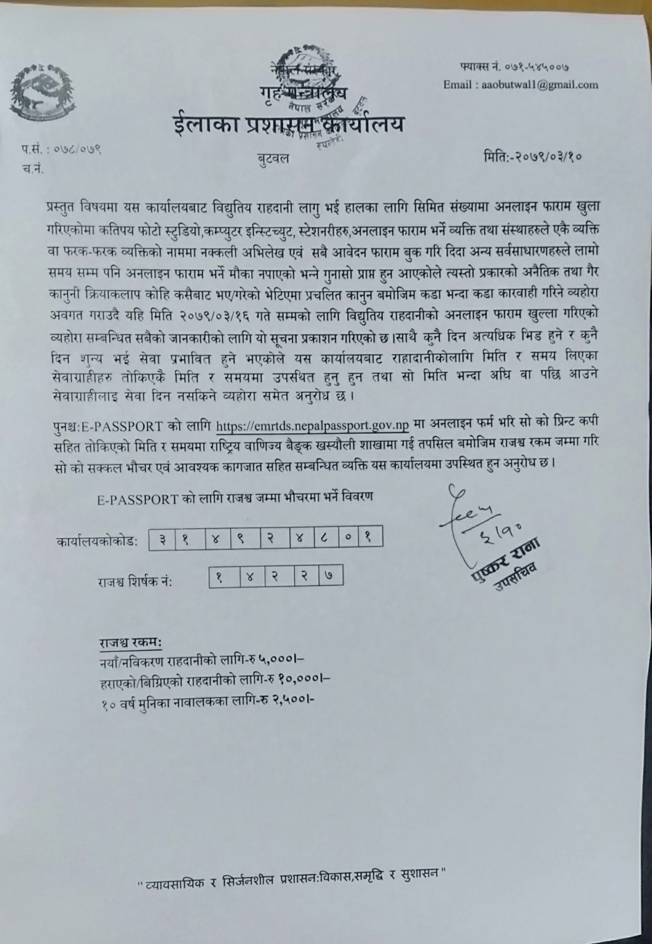 राहदानीको सेवा सुचारु सम्बन्धी सुचना ।
