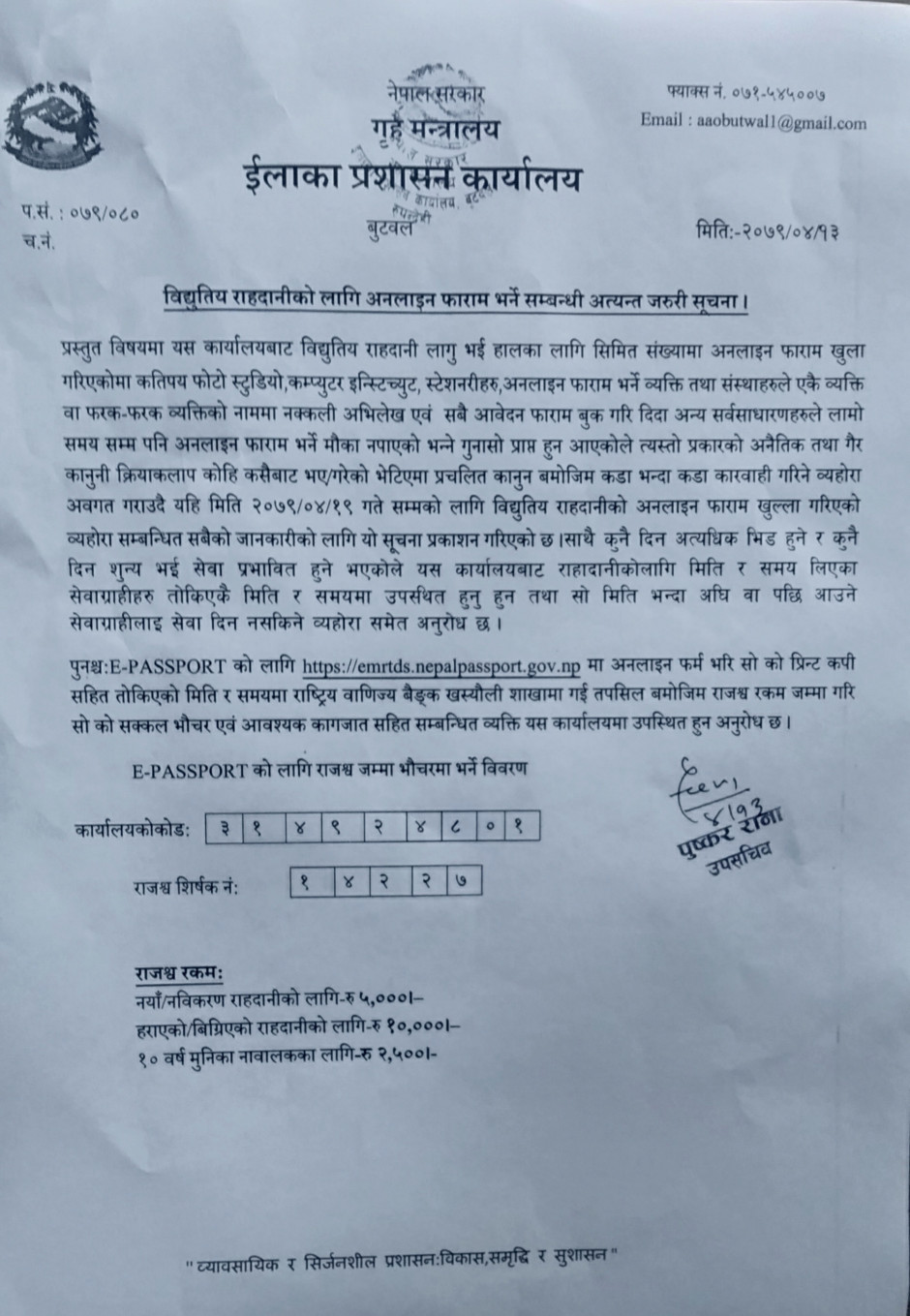 © सर्वाधिकार सुरक्षित ईलाका प्रशासन कार्यालय, बुटवल, रुपन्देही