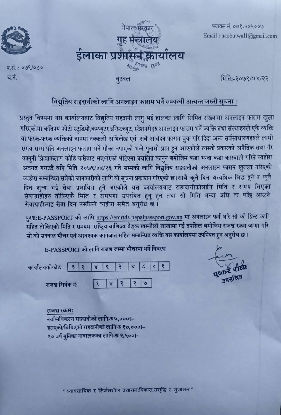 राहदानीको सेवा सुचारु सम्बन्धी सुचना ।