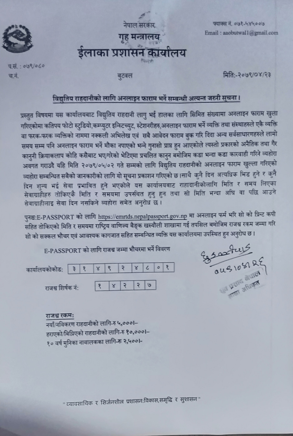 राहदानीको सेवा सुचारु सम्बन्धी सुचना ।