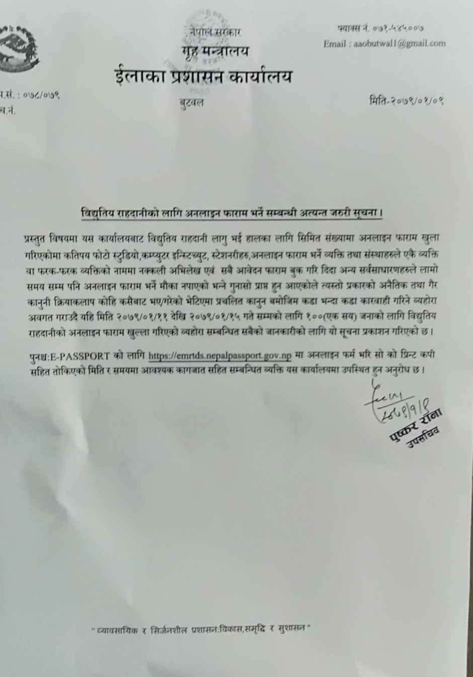 © सर्वाधिकार सुरक्षित ईलाका प्रशासन कार्यालय, बुटवल, रुपन्देही