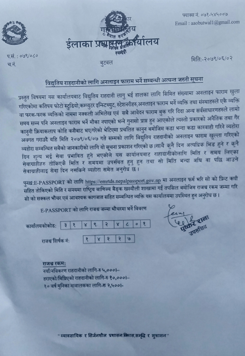 राहदानीको सेवा सुचारु सम्बन्धी सुचना ।
