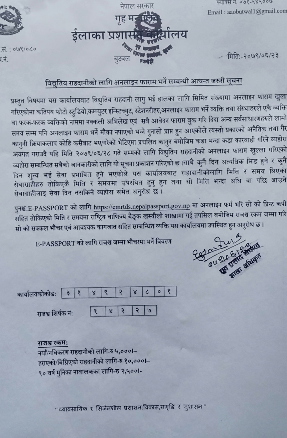 राहदानीको सम्बन्धी सुचना।