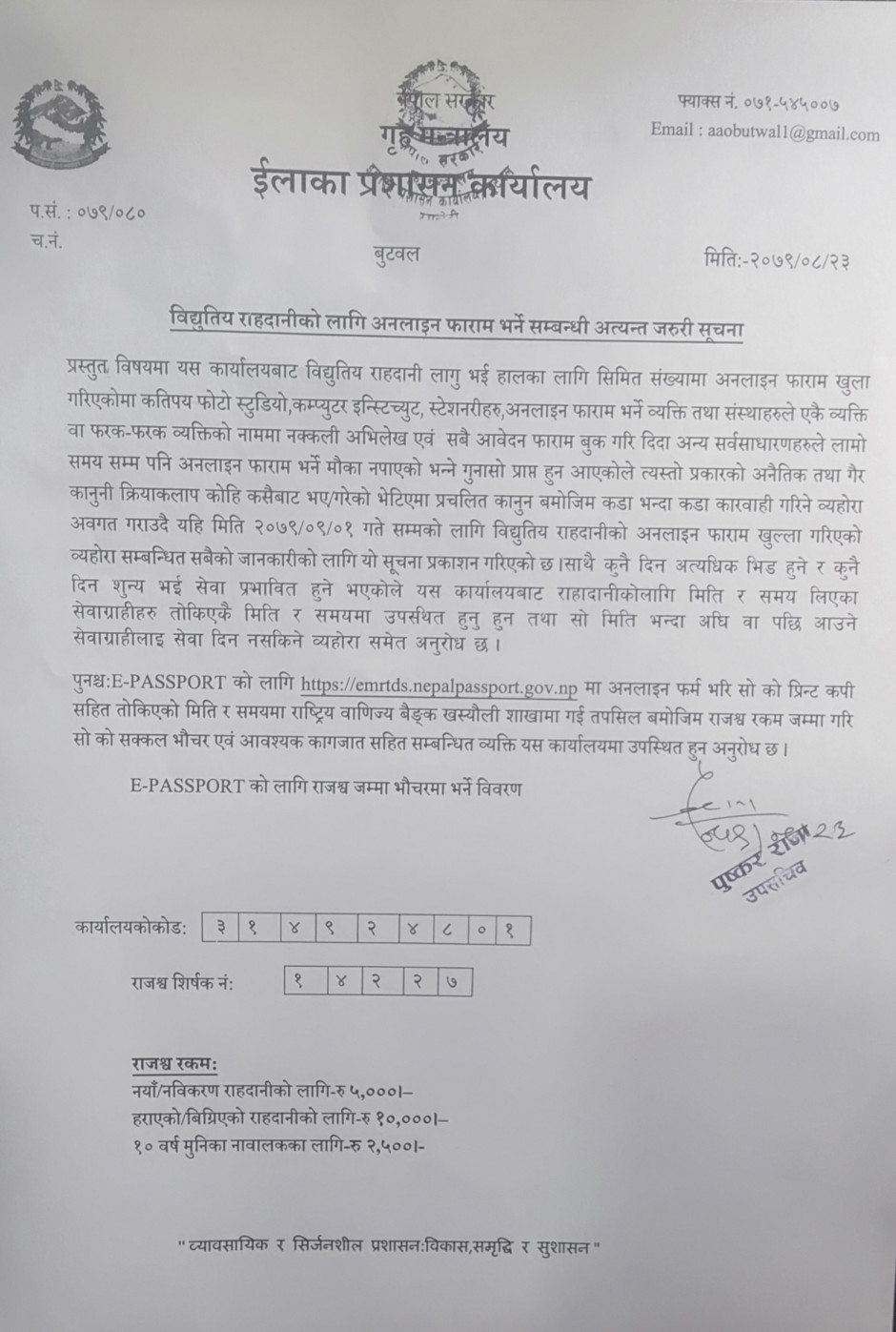 राहदानीको सेवा सुचारु सम्बन्धी सुचना ।