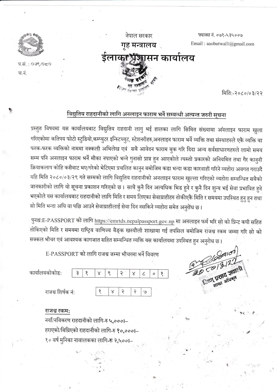 राहदानीको सेवा सुचारु सम्बन्धी सुचना ।