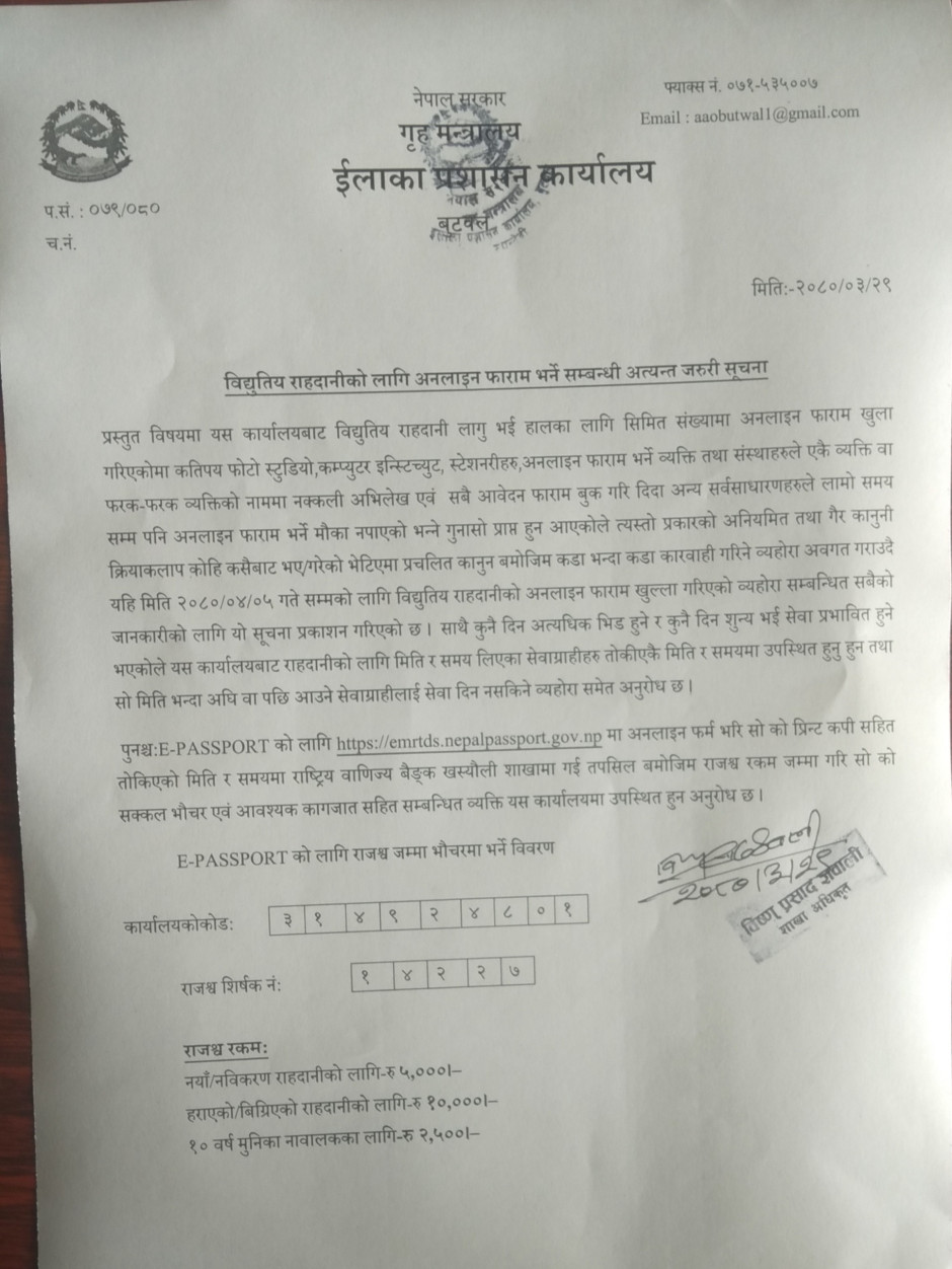 राहदानीको सम्बन्धी सुचना।