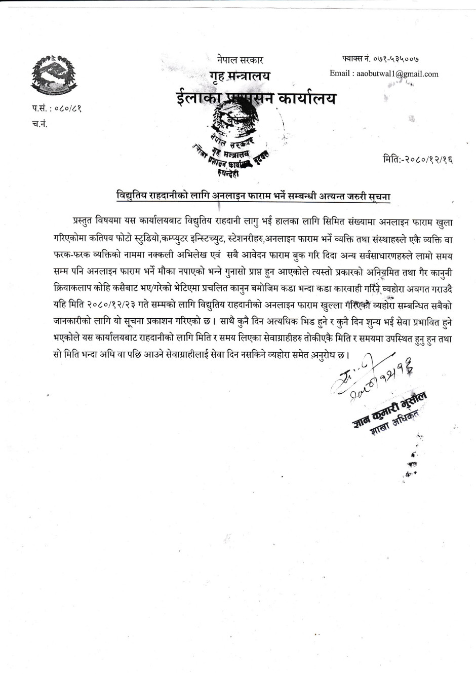 © सर्वाधिकार सुरक्षित ईलाका प्रशासन कार्यालय, बुटवल, रुपन्देही