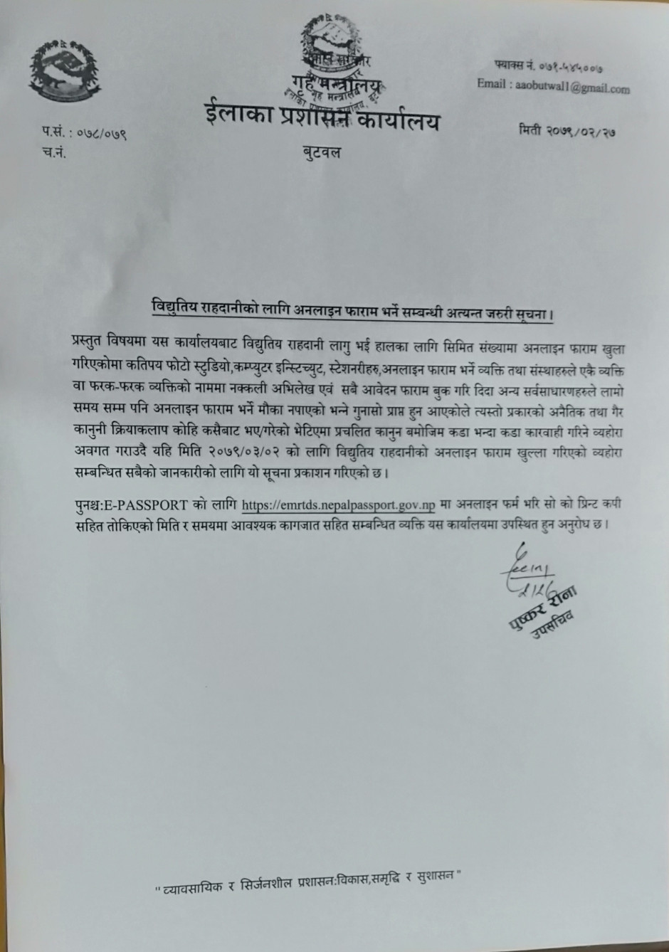 © सर्वाधिकार सुरक्षित ईलाका प्रशासन कार्यालय, बुटवल, रुपन्देही