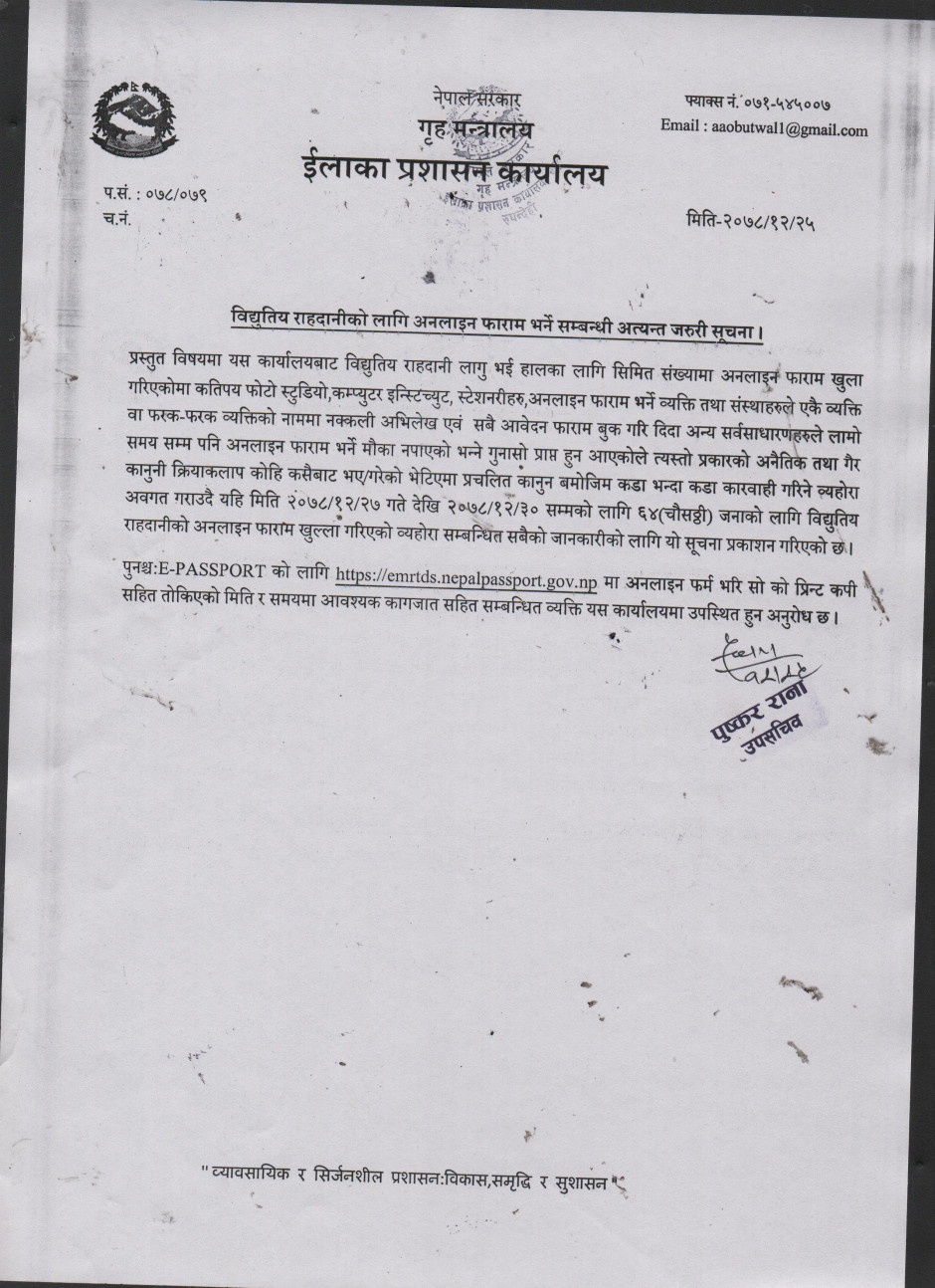 राहदानीको सम्बन्धी सुचना।