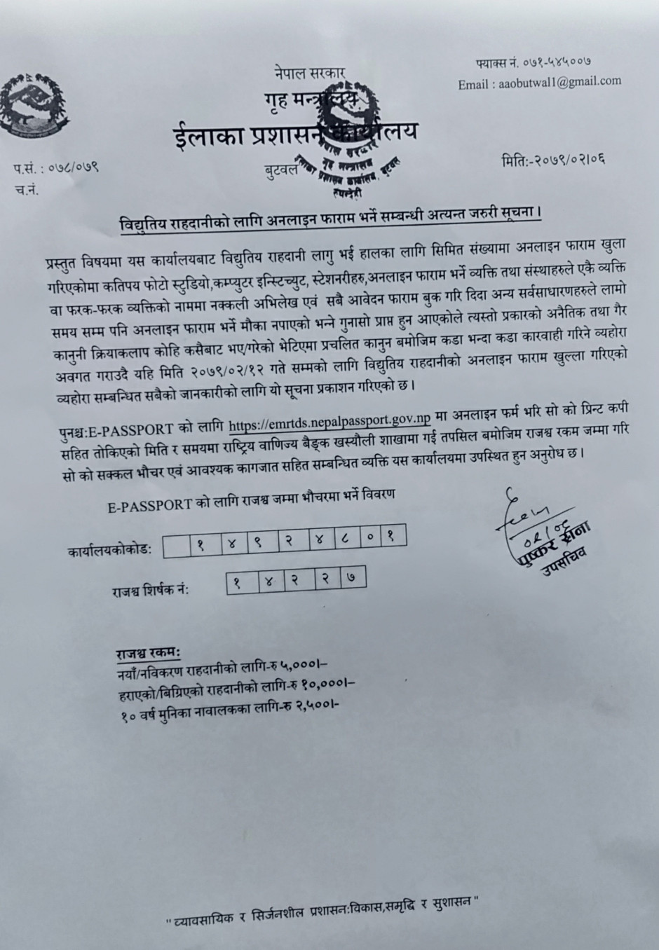 राहदानीको सेवा सुचारु सम्बन्धी सुचना ।