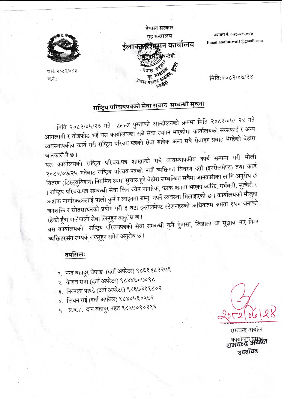 जिल्ला प्रशासन कार्यालय, रुपन्देही