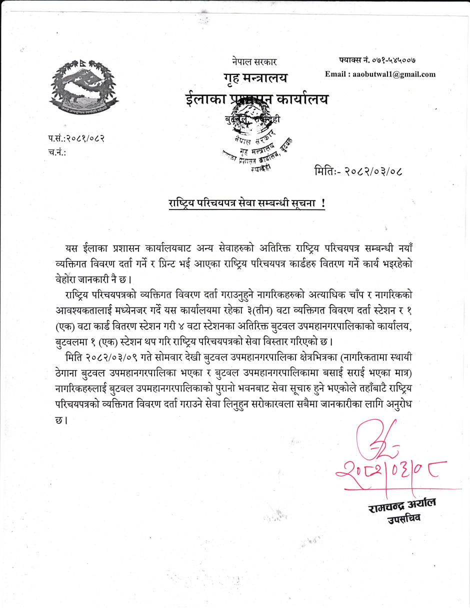 राष्ट्रिय परिचपत्रको सेवा सूचारु सम्बन्धी सुचना ।