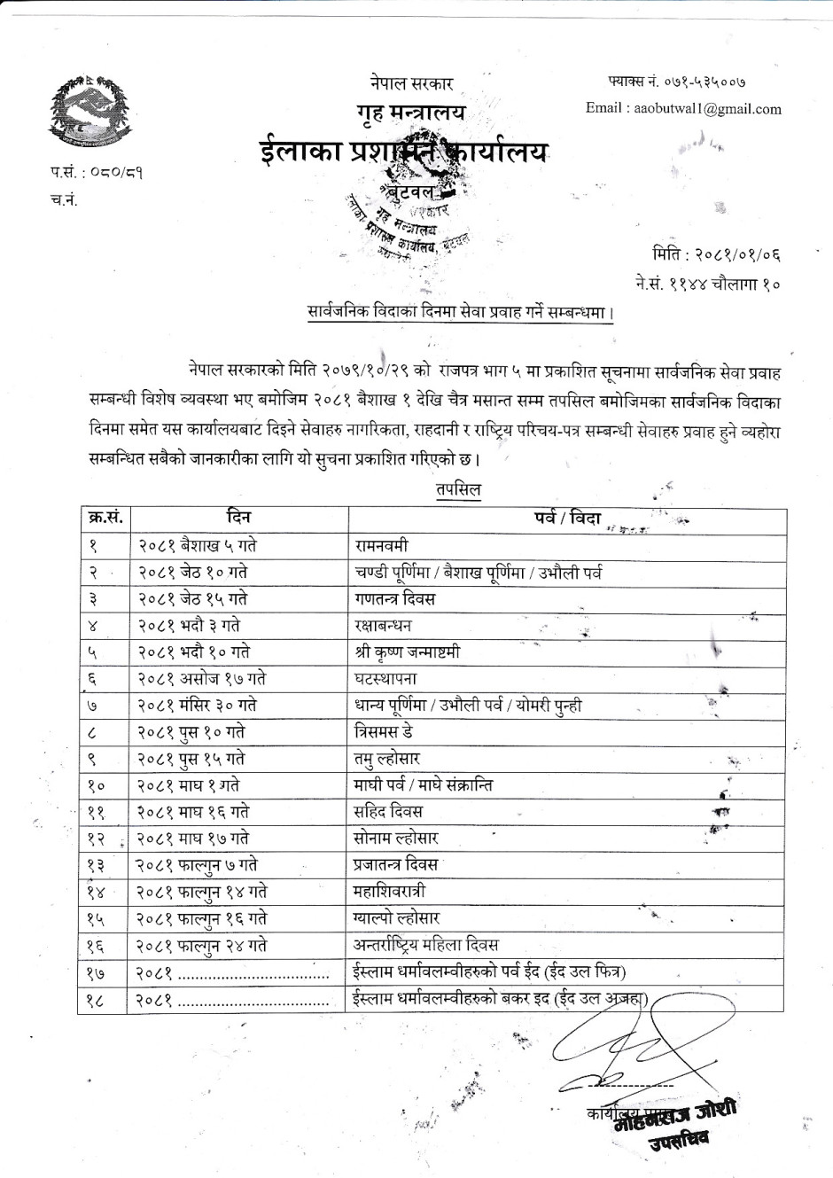 सार्वजनिक विदाका दिनमा सेवा प्रवाह गर्ने सम्बन्धमा