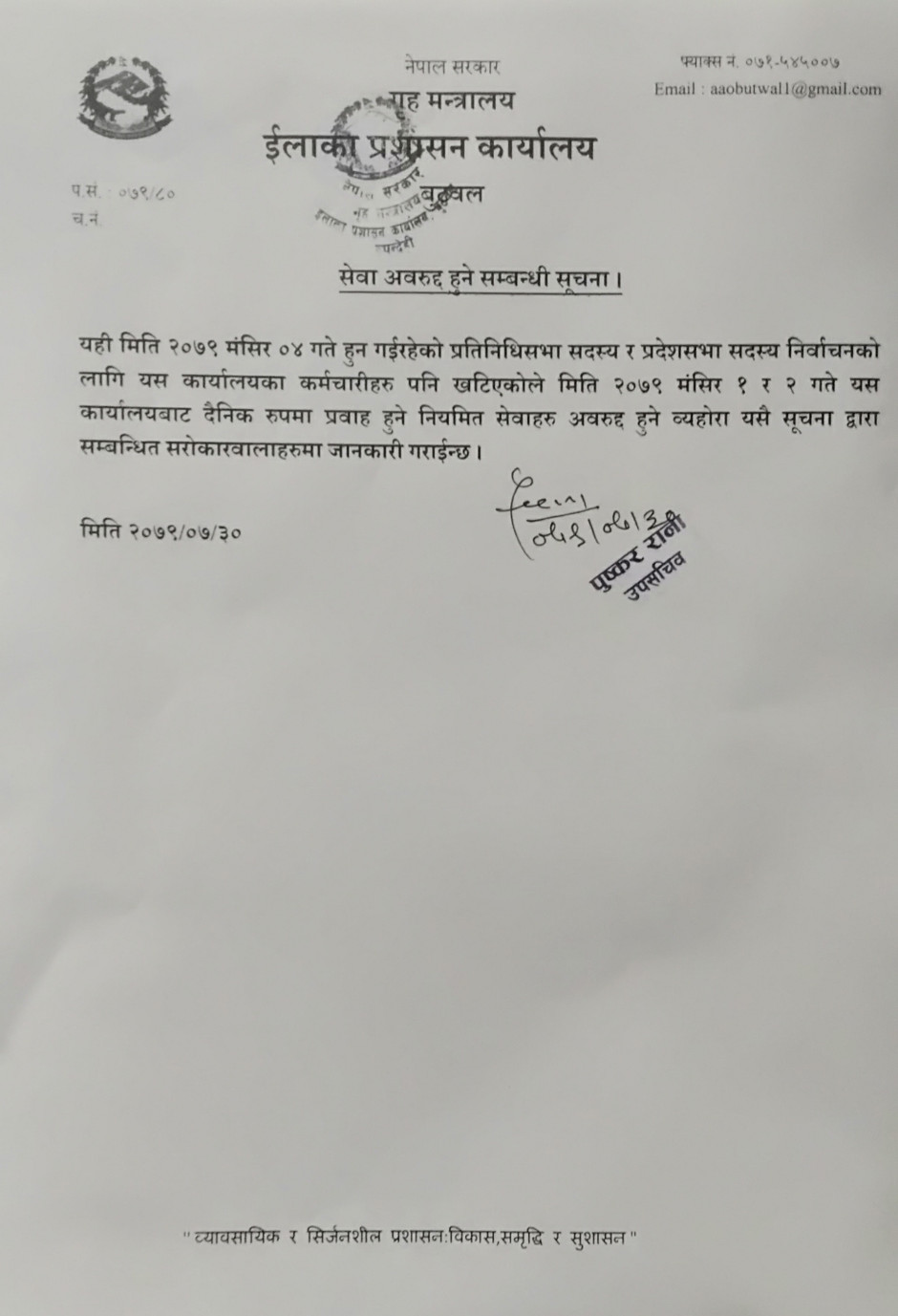 सेवा अवरूद्व हुने सम्बन्धी सूचना